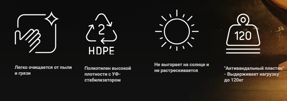 Светодиодные светильники и предметы интерьера производятся из полиэтилена низкого давления. Благодаря своим свойствам, а также методу изготовления, полимер не растрескивается и устойчив к длительному воздействию прямых солнечных лучей. В составе полиэтилена, применяемого в производстве изделий, содержится УФ-стабилизатор и отсутствуют красители. Поэтому белый цвет корпуса светильников остается неизменным даже при постоянной работе под солнечными лучами.